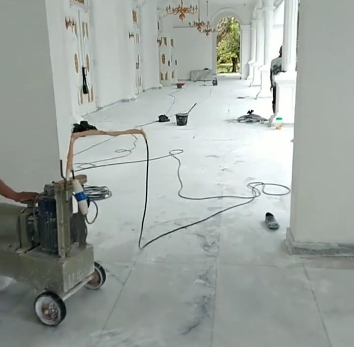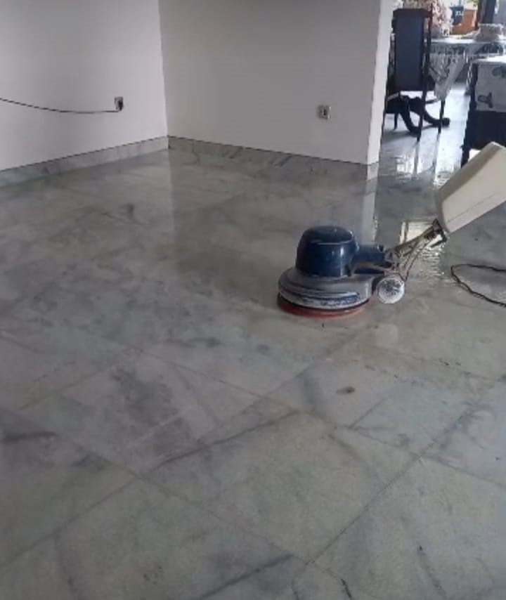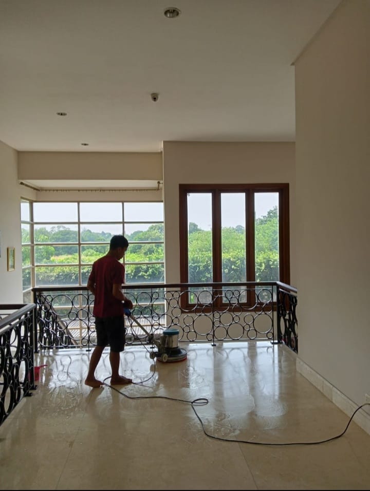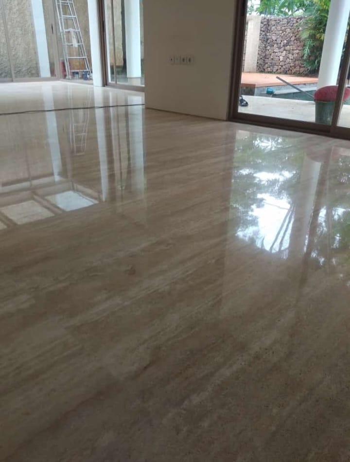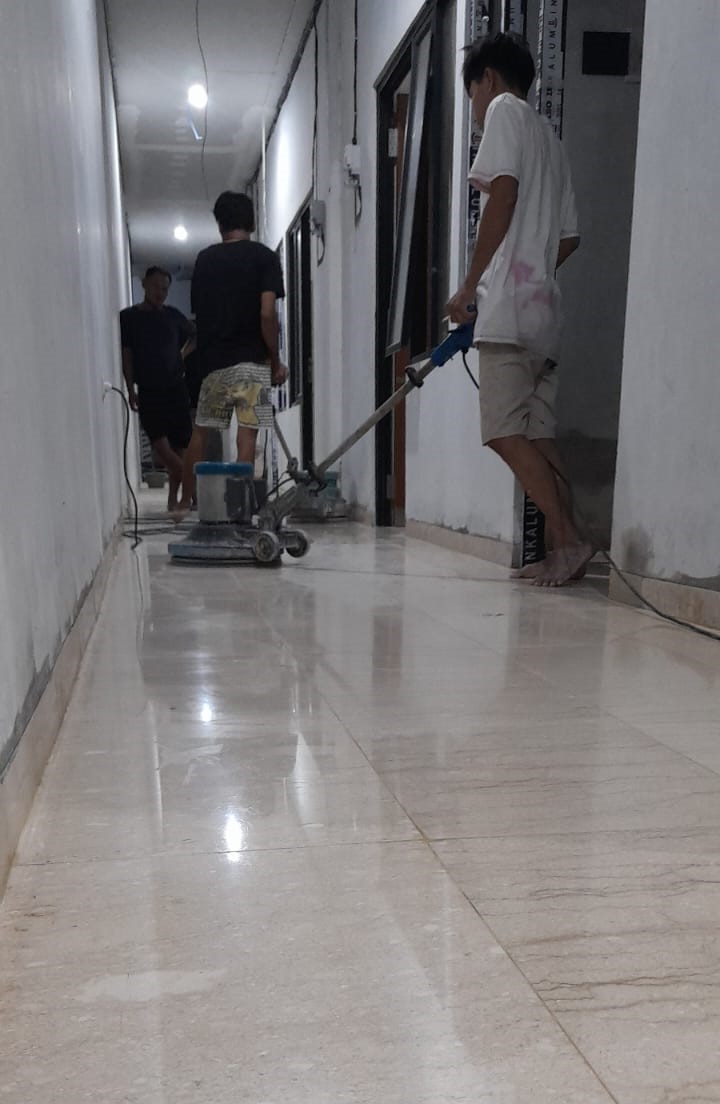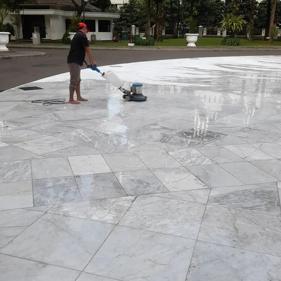 Lantai marmer yang kusam akan kembali mengkilap dan terlihat baru dengan teknik poles profesional kami
